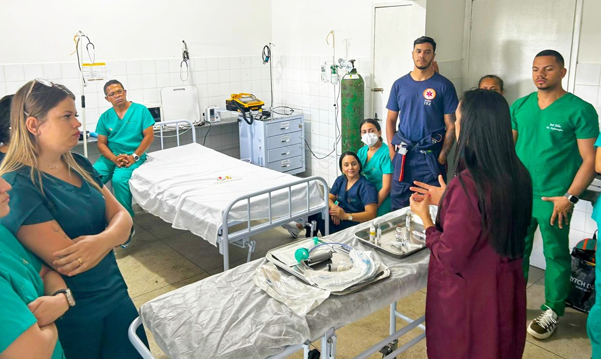 Nos dias 23 e 24 de outubro, enfermeiros e técnicos de enfermagem participaram de uma capacitação voltada a Intubação Orotraqueal. O treinamento foi ministrado na Sala Vermelha do Hospital Municipal Mãe Kyola e abordou temas como: checagem de materiais, pré-oxigenação, uso de medicações e manejo de vias aéreas difíceis. A atividade foi conduzida pela enfermeira emergencista e intensivista Viviane Henrique, com apoio da coordenadora Mariana Couto.