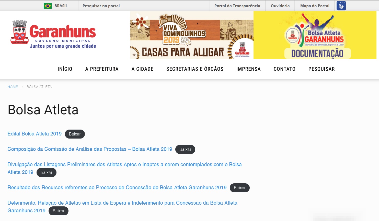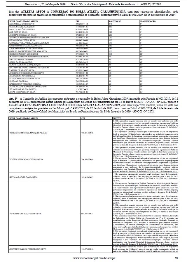 Diário Oficial dos Municípios e no site da Prefeitura (http://garanhuns.pe.gov.br/bolsa-atleta/).
