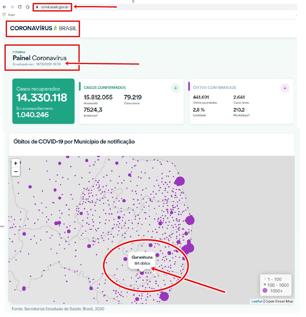 Saúde e que reúne informações de todo o Brasil sobre a Pandemia, Garanhuns já registrou,