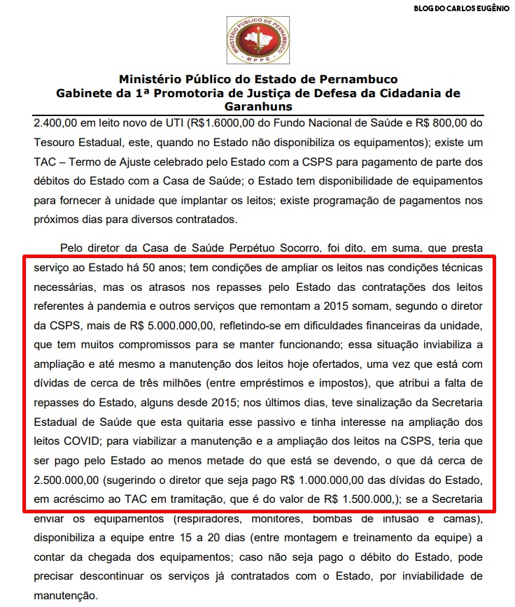 Estado a ampliação desses leitos, seja na Casa de Saúde Perpétuo Socorro, que