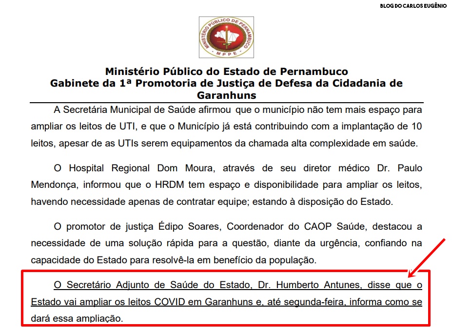 de UTI, aqui em Garanhuns. “Em face do quadro atual, entendemos que cabe ao