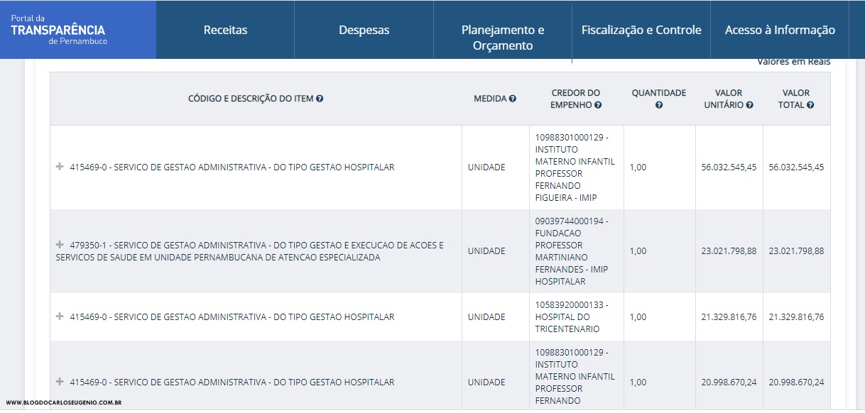 site da Secretaria Estadual de Saúde (SES), que apresenta todos os gastos da