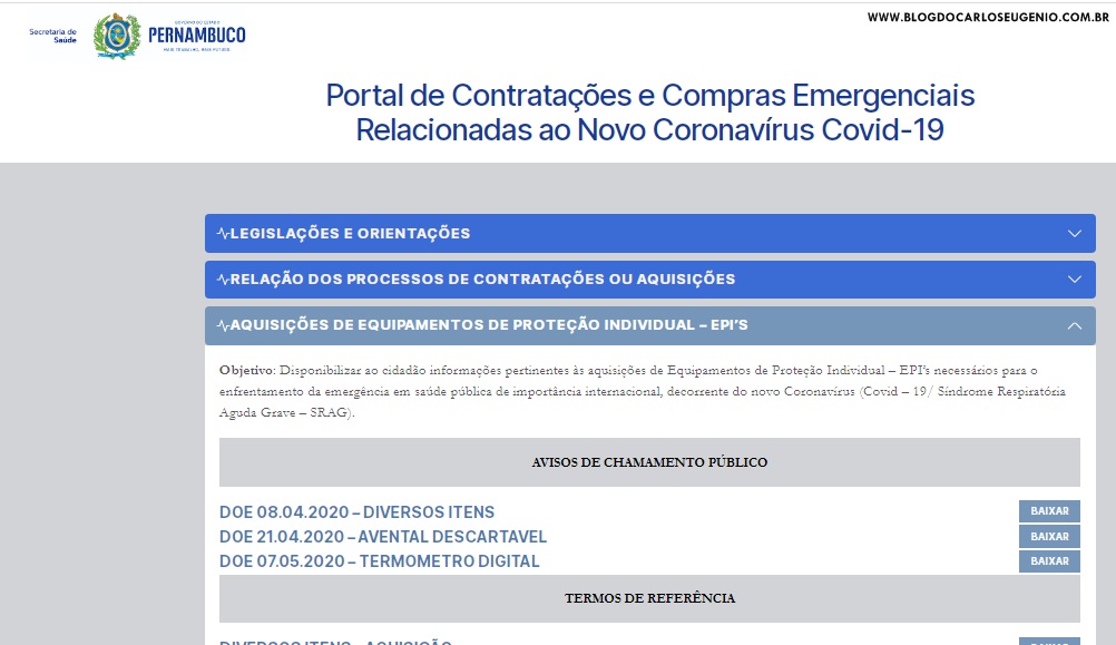 voltadas ao combate do Novo Coronavírus no Estado, o Governo de Pernambuco vem disponibilizando,