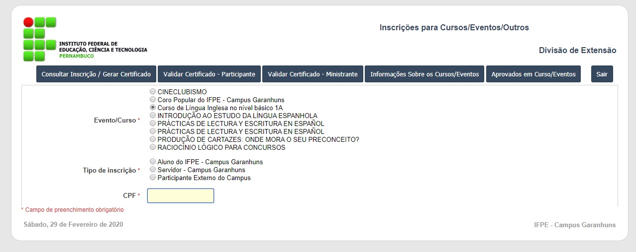 do IFPE Garanhuns. Já as matrículas acontecem nos dias 6 e 9 de março. Outras