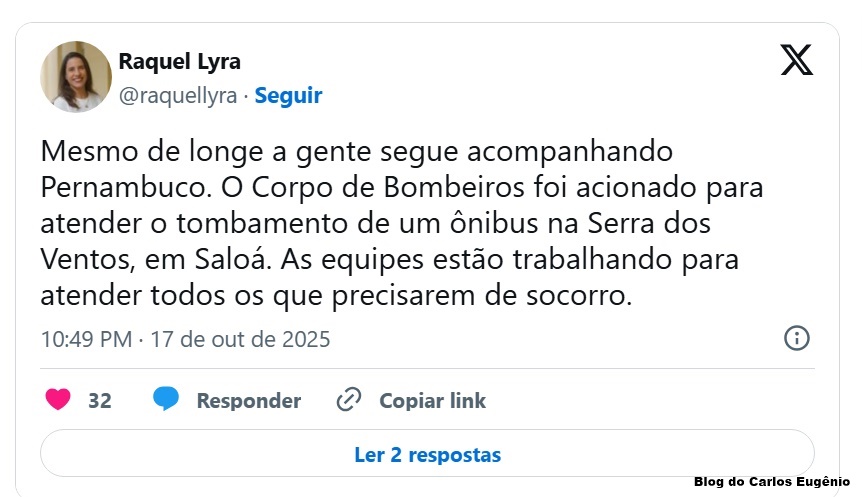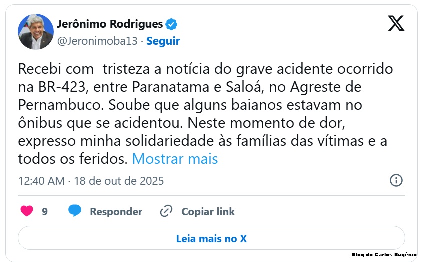 A governadora de Pernambuco, Raquel Lyra (PSD), e o governador da Bahia, Jerônimo Rodrigues (PT), manifestaram solidariedade às vítimas nas redes sociais e afirmaram estar acompanhando o caso.