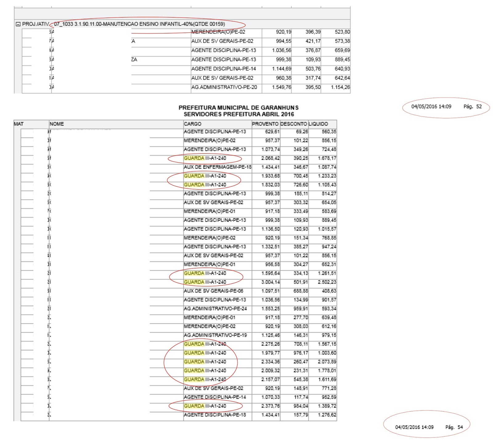 denunciantes, vinte e oito Guardas Municipais tiveram os seus salários pagos