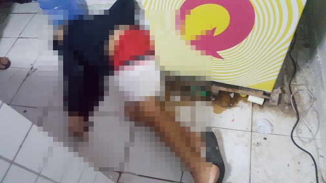 ao sair foi alvejado pelos disparos, caindo sem vida dentro do estabelecimento.