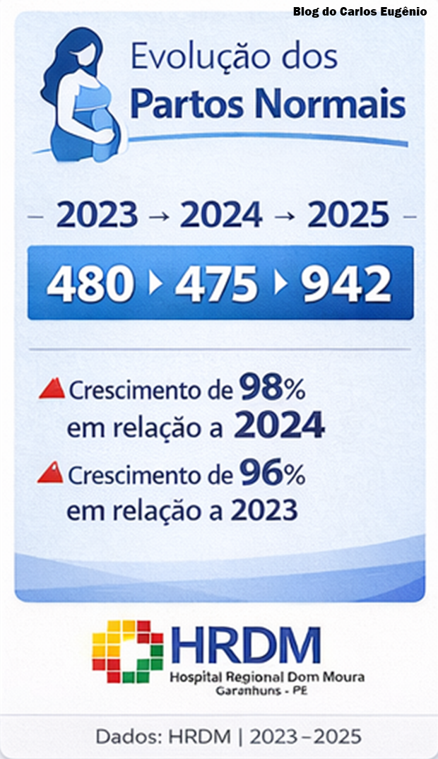 De acordo com dados fornecidos pela Unidade, na área obstétrica, o crescimento ocorreu de forma contínua ao longo dos três anos. Em 2023, o HRDM realizou 480 partos normais. Em 2024, esse número chegou a 475, mantendo estabilidade, e em 2025 houve um salto significativo para 942 partos, representando um crescimento de aproximadamente 98% em relação a 2024 e 96% em relação a 2023.