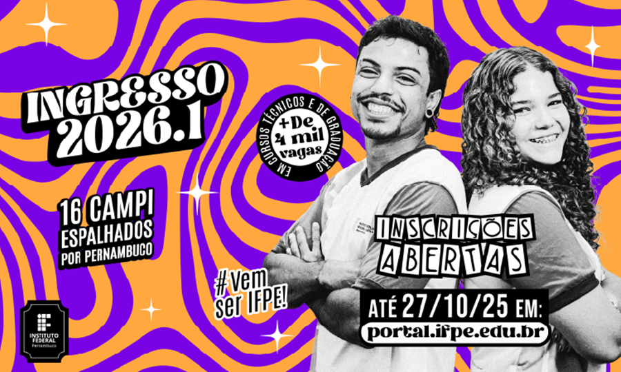 As inscrições seguem até o dia 27 de outubro e devem ser feitas pelo site: funcern.br/concursos/ifpe-ingresso-2026-1, com acesso também disponível no portal oficial do IFPE. As oportunidades estão assim distribuídas: