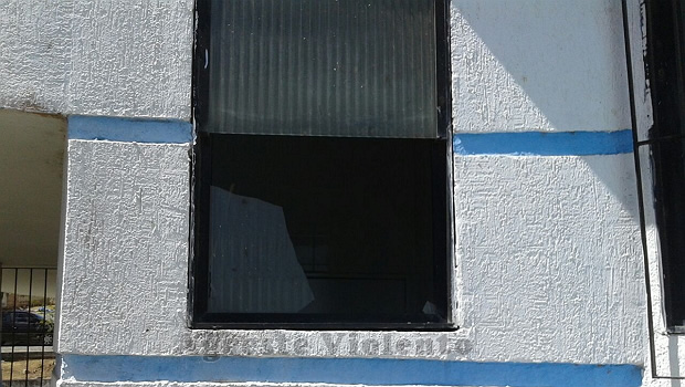 segunda-feira, dia 6, encontraram o vidro de uma das janelas do prédio quebrado