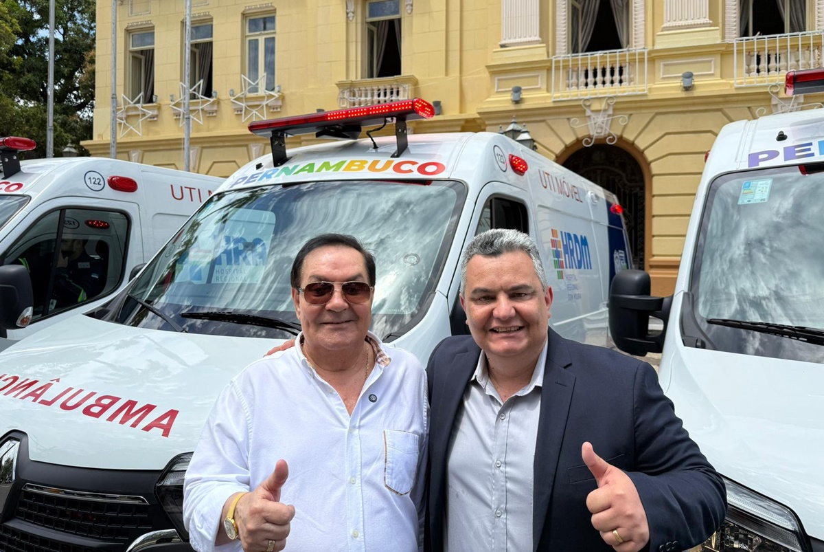 HOSPITAL DOM MOURA – E nesta segunda-feira, dia 1º, Izaías Régis participou da entrega de 10 novas ambulâncias de Unidade de Suporte Avançado (tipo D) pela governadora Raquel Lyra. “Entre os veículos, um foi destinado ao Hospital Regional Dom Moura (HRDM), fruto da articulação direta de Izaías Régis”, registrou a Assessoria.
