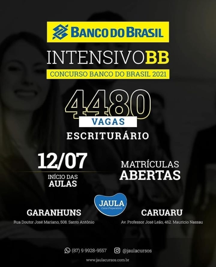 Garanhuns, inicia as turmas para o Banco do Brasil. As matrículas estão