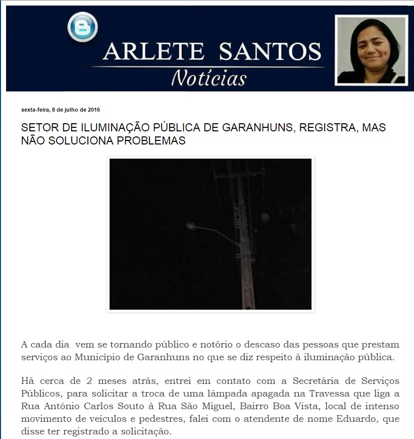 mostrando insatisfeita com o serviço de manutenção da Iluminação Pública