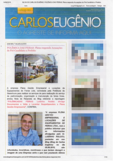 Eugênio e um outro veículo de comunicação da Cidade teriam publicado