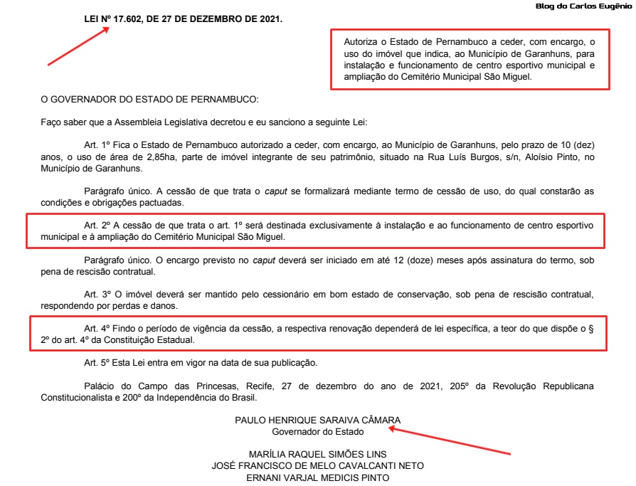 No texto da ação civil pública, o Promotor de Justiça Domingos Sávio Pereira Agra ressaltou que a omissão do Município “é inequívoca e protelatória” e lembrou que em 2021 foi sancionada a lei estadual nº 17.602, que autorizou o Estado a ceder ao município uma área de 2,85 hectares (contígua ao Cemitério São Miguel) para promover a ampliação daquele equipamento público e que os trabalhos deveriam ser iniciados em até 12 meses após assinatura do termo, sob pena de rescisão contratual (Parágrafo único do art. 2º da lei).