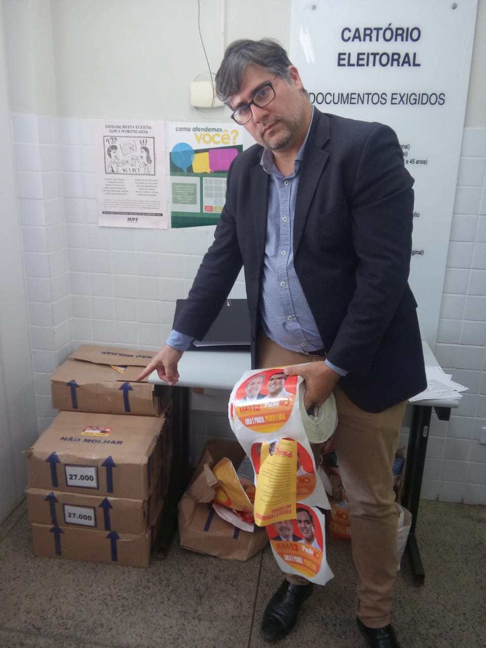 caixas com 27 mil santinhos com as imagens do ex-presidente e Paulo com os