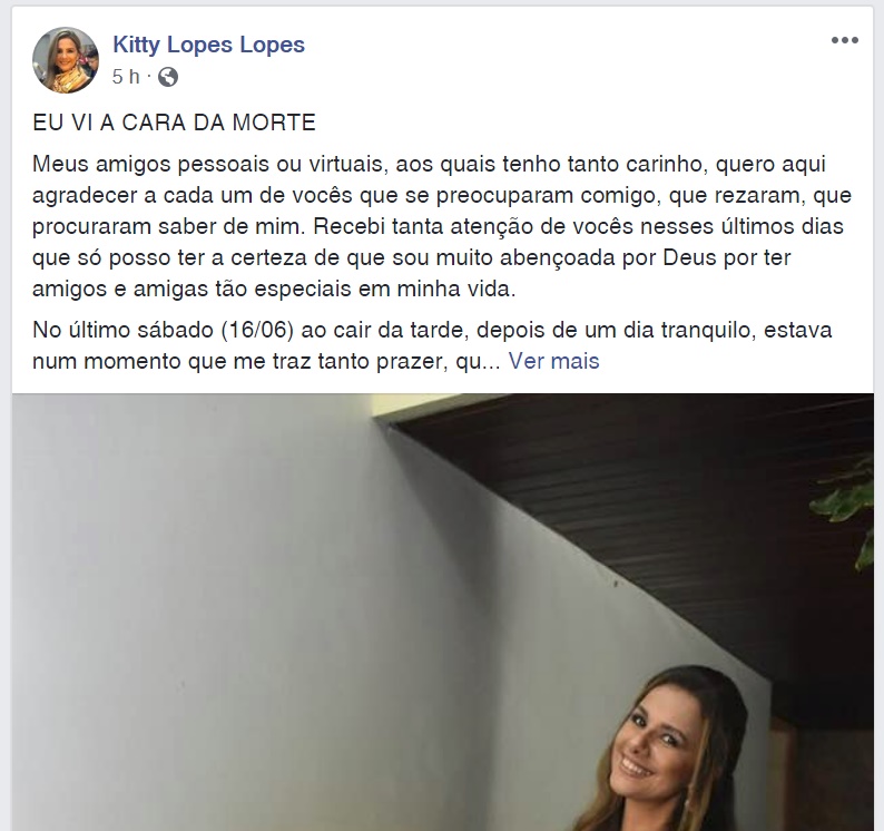 Morte”, Kitty registrou em seu perfil no facebook, os momentos de angústia