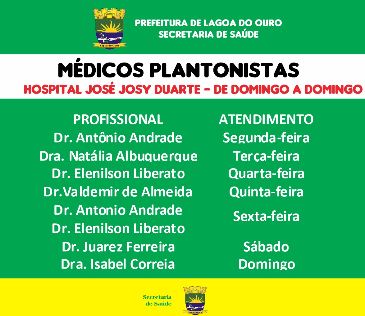 Secretaria de Saúde de Lagoa do Ouro, a Escala de Médicos Plantonistas sofrerá