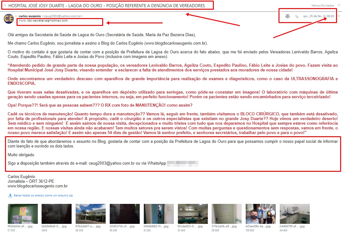 Prefeito Edson Lopes (Quebra Santo), como também via e-mail com a Secretaria de