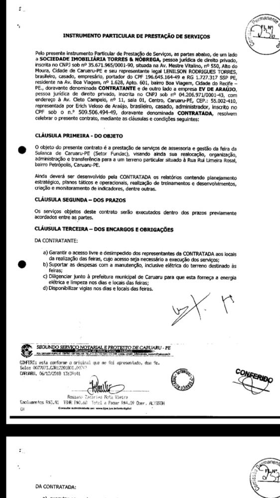1º INSTRUMENTO PARTICULAR DE PRESTAÇÃO DE SERVIÇOS, supostamente firmado