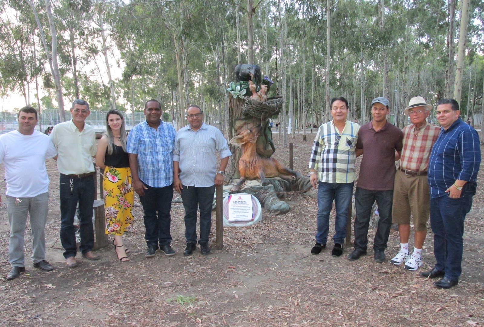 obra busquei retratar a origem de Garanhuns, então talhei em troncos de eucalipto