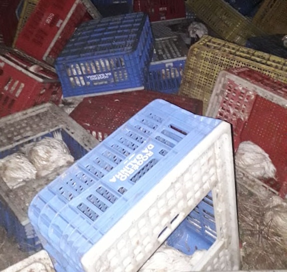 de frangos, tombou na Rodovia, quando ocorreu a colisão.