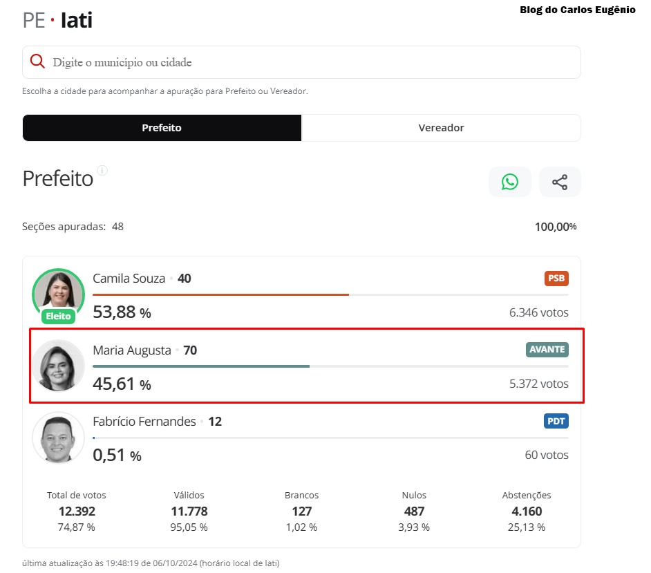 Nesse fim de semana veio à tona a informação que a ex-candidata à Prefeita de Iati, Maria Augusta (Avante) anunciou apoio ao Prefeito do Recife e presidente nacional do PSB, João Campos. Ele deve ser confirmado como candidato a Governador de Pernambuco nos próximos dias.