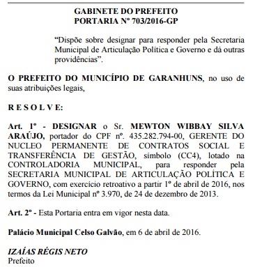 Com a publicação, as especulações de que o Controlador Geral do Município,