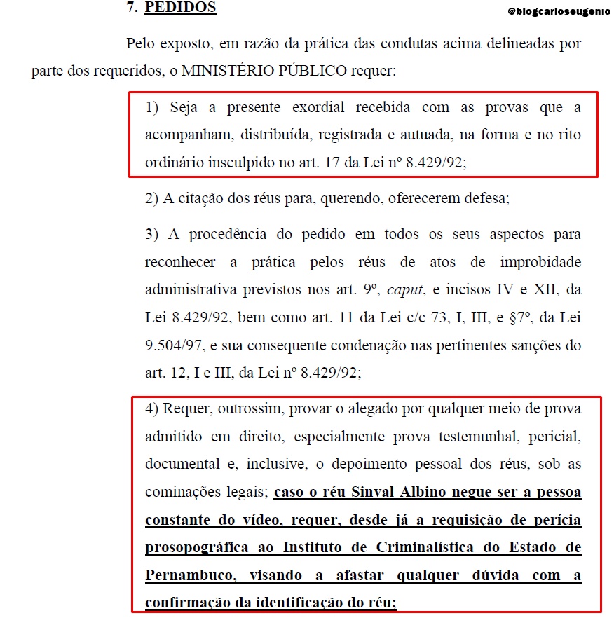 Na ação ingressada junto à Vara da Fazenda Pública de Garanhuns, o Ministério Público pede a condenação dos réus com base na Lei de Improbidade Administrativa, incluindo aplicação de sanções como ressarcimento ao erário e demais penalidades previstas em lei.