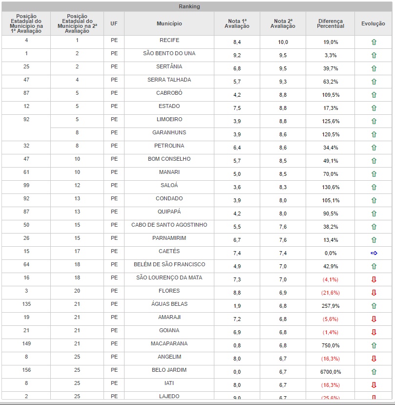 Conselho e Saloá também cresceram vertiginosamente em relação a 1ª avaliação. O