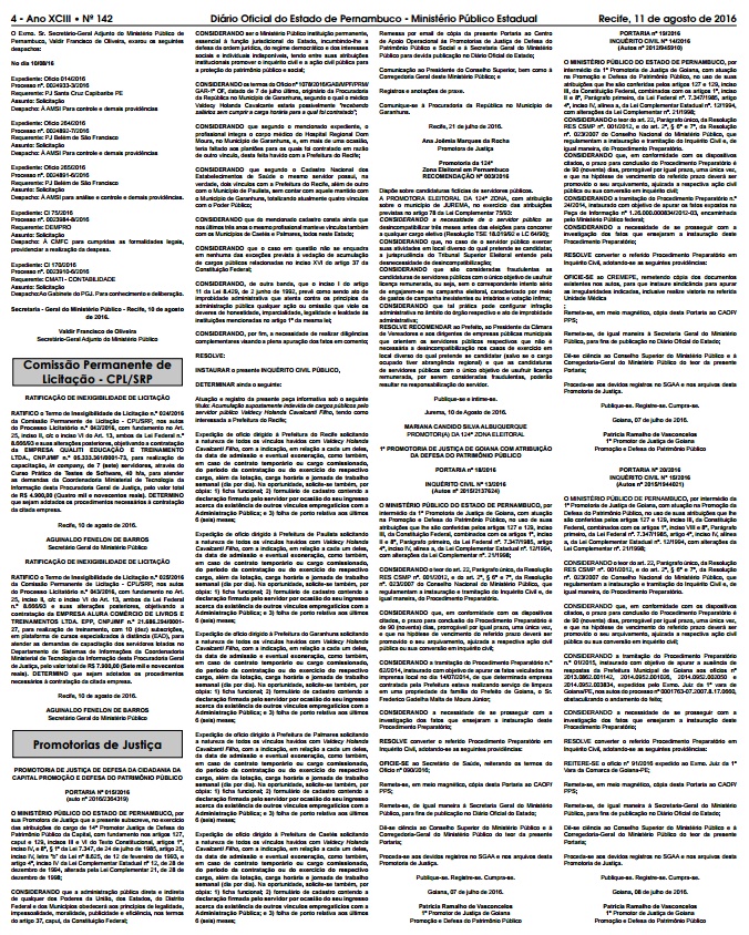 do Estado de Pernambuco – Ministério Público Estadual, de hoje, dia 11, o