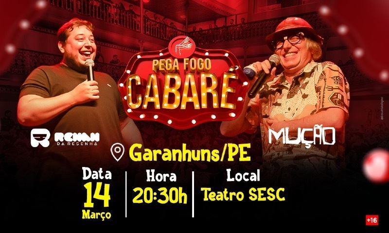 O projeto Pega Fogo Cabaré é o encontro de gerações em cima do palco. A união de dois humoristas genuinamente nordestinos, criados no cuscuz e no tabefe. Ambos vieram do Interior e conquistaram o povo brasileiro, falando de seus causos do Sertão, fazendo piada com o cotidiano e levando a plateia a gargalhar, com suas gaiatices, presepadas e mungangas. Ingressos podem ser adquiridos clicando AQUI. (@blogcarloseugenio)