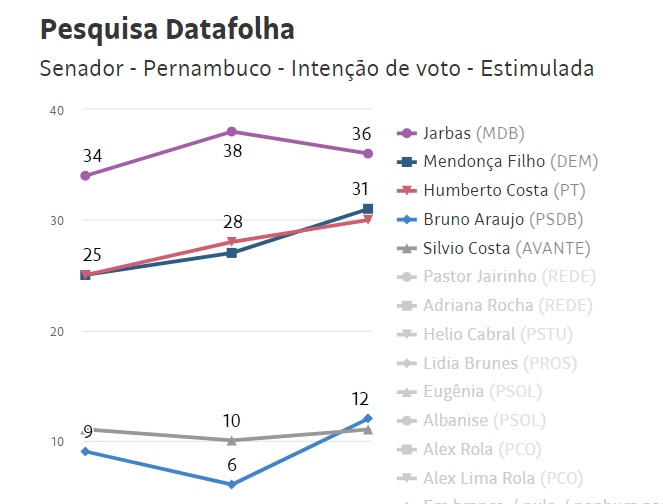 aparecem Bruno Araújo (PSDB), com 12%; Sílvio Costa (Avante), com 11%; Pastor