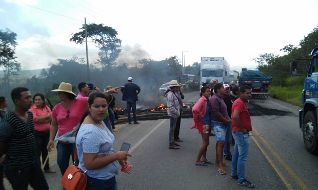 volta das 9h30min, populares interditaram a Rodovia BR 424, no sentido