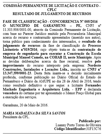 Municípios (AMUPE) de ontem, dia 23, trouxe o resultado do Processo Licitatório