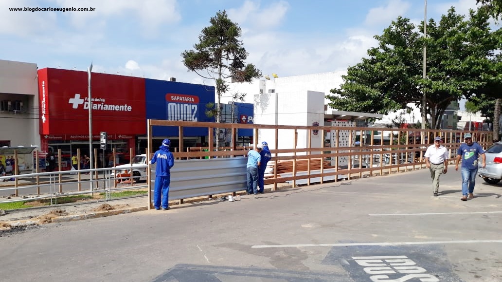 os tapumes para isolamento das áreas que vão receber a requalificação, com
