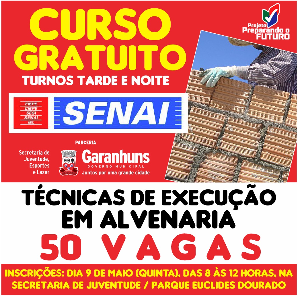 o curso de Técnicas de Execução em Alvenaria. O Curso será ministrado na
