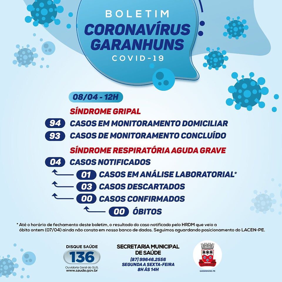 Boletim Municipal emitido pela Secretaria de Saúde de Garanhuns, através da