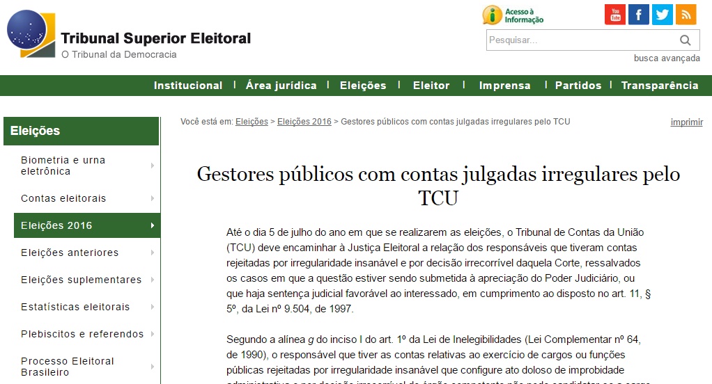 denunciados pelo Tribunal de Contas da União (TCU) à Justiça Eleitoral na