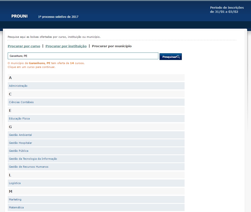 inscrições começam na próxima terça-feira, dia 31, mas os candidatos já podem consultar as bolsas disponíveis e faculdades
