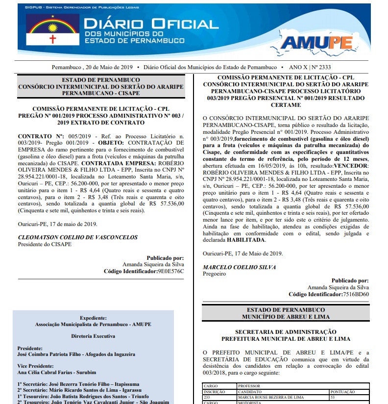 mantido pela Associação Municipalista de Pernambuco – AMUPE, onde se publicam