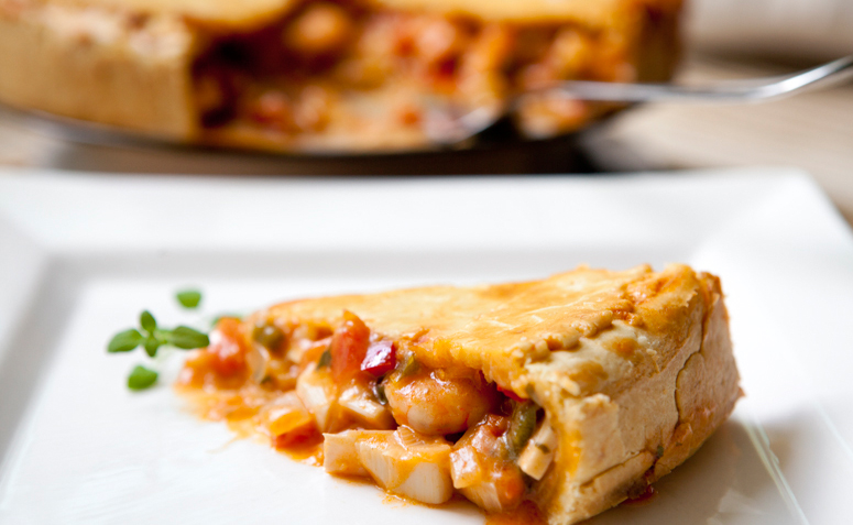 Quiche de palmito; Quiche de queijo; Torta de camarão; Torta de ricota; Torta