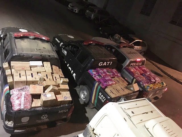 o material foi apreendido e conduzido em três Viaturas, do tipo Amarok, e em um