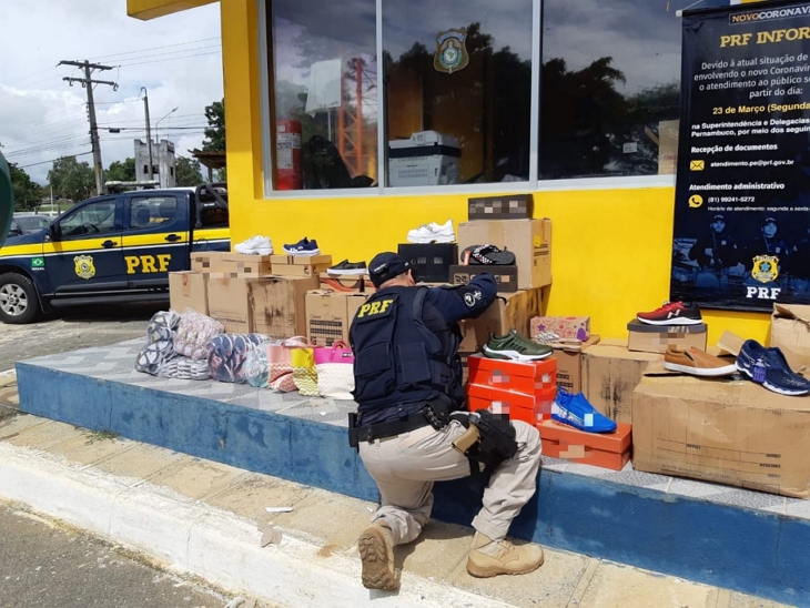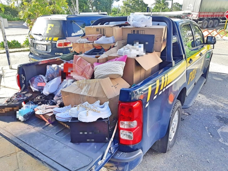 foram encontradas centenas de caixas com tênis e sapatos de marcas importadas.