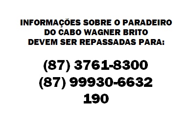 leve ao seu paradeiro do Militar, deve ser informada a Polícia, através do (87)