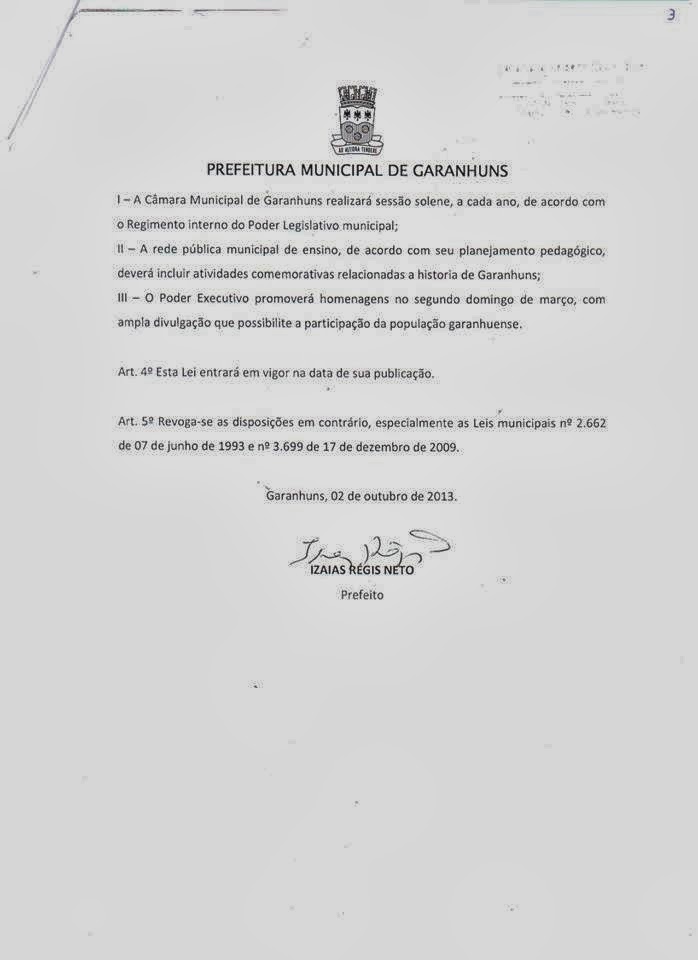 procurar cada vez mais comemorar e cultivar a história de nossa Cidade. Garanhuns