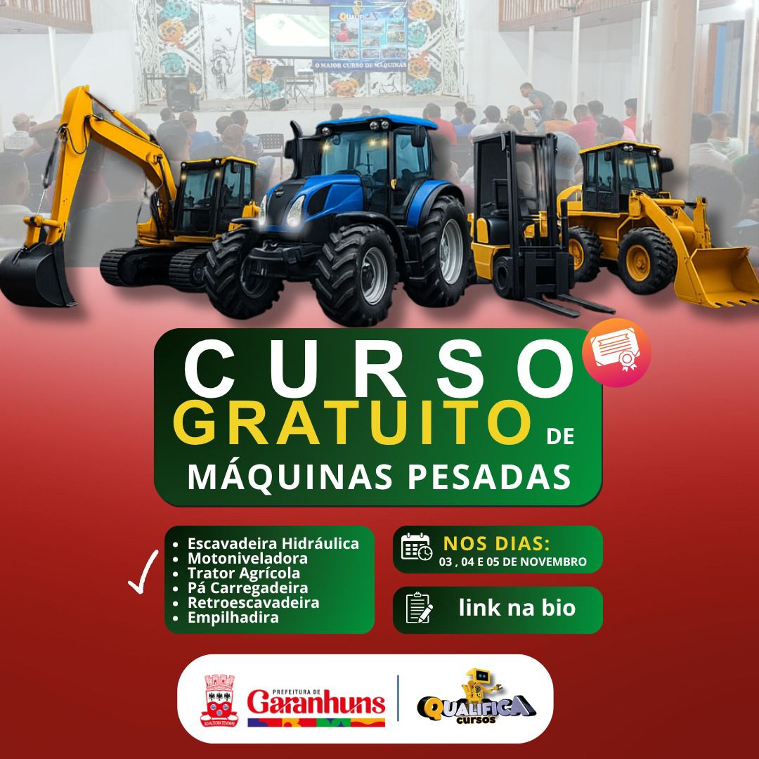 MÁQUINAS PESADAS – E a Secretaria de Infraestrutura, Obras e Serviços Públicos, em parceria com a empresa Qualifica Cursos, abriu as inscrições para o curso gratuito de Máquinas Pesadas.