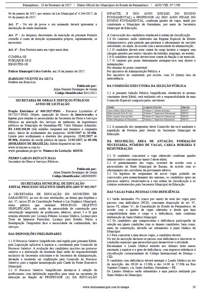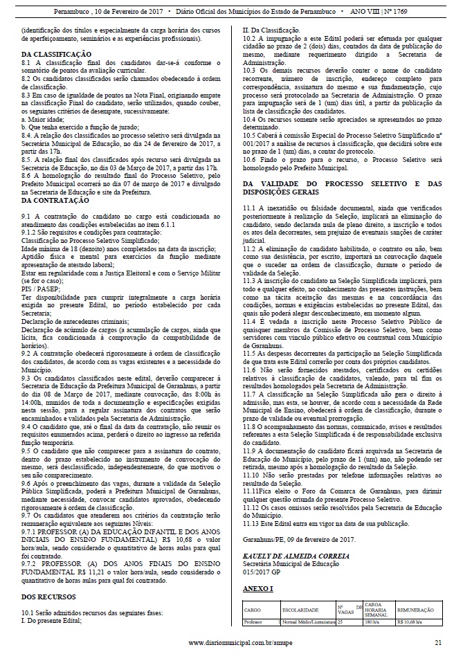 Educação de Garanhuns publicou no Diário Oficial da última sexta-feira, dia 10, um edital de Seleção