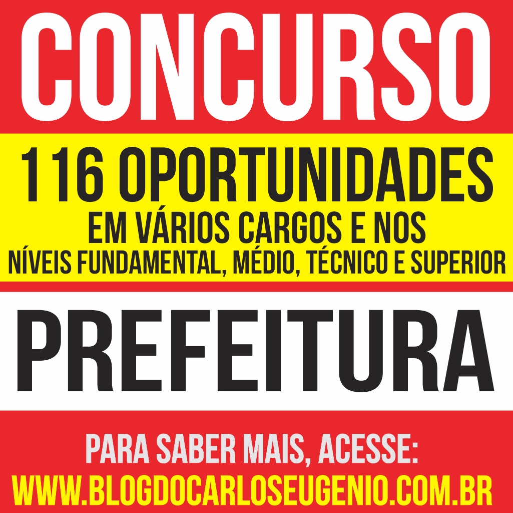 116 vagas para diversos cargos nos níveis: fundamental, médio, técnico e