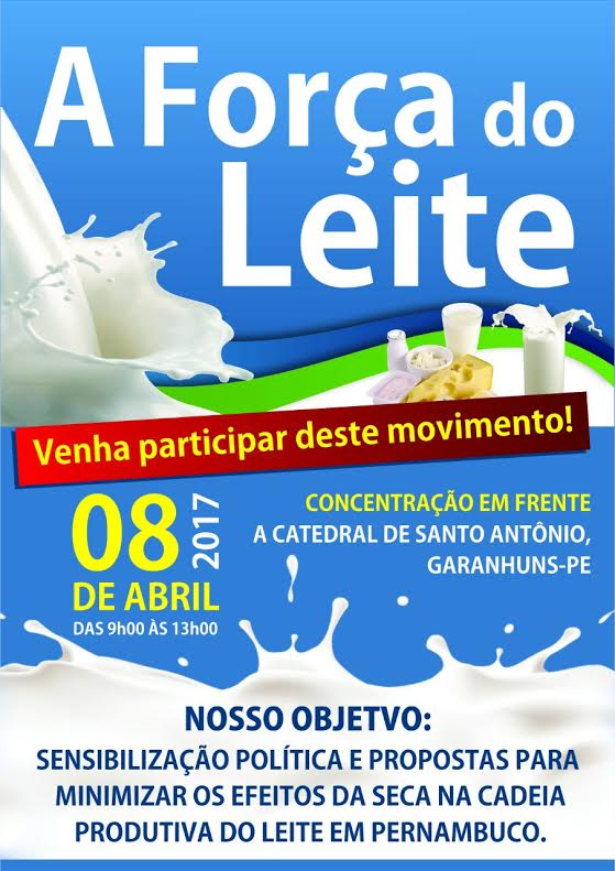 minimizar os efeitos da seca na cadeia produtiva do Leite em Pernambuco. A concentração começa às 9h, em frente a Catedral de